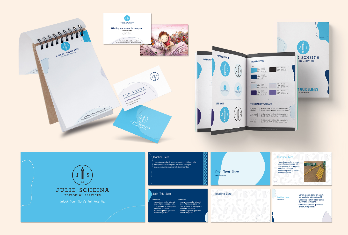 We collaborated with an editorial service business owner to strengthen their existing brand foundation through the creation of comprehensive brand guidelines and structured branding systems and templates. While the client already had an established identity, their challenge was maintaining consistency across various print and digital platforms as the business expanded.